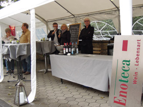Auf demselben schönen Platz neben der Sparkasse wie letztes Jahr, zog es wieder viele Weinfreunde zum Stand der Enoteca. Die angebotenen Weine, Leichtigkeit des Seins, die Heroldrebe Rosé , der fruchtige Tempranillo La Estafeta und der vollmundige Luna, Nero D’Avola fanden großen Zuspruch. Unter dem gemütlichen Zelt ist man gerne sitzen geblieben und hat bei einem leckeren Glas Wein alte Bekannte und Freunde wiedergetroffen und auch neue Weinfreunde kennengelernt. Die ganze Zeit war ein reges Treiben und es hat uns viel Spaß gemacht, nette Leute kennenzulernen, Freunde und Kunden wiederzusehen und unsere Weine auszuschenken. Schön, dass Ihr da ward!